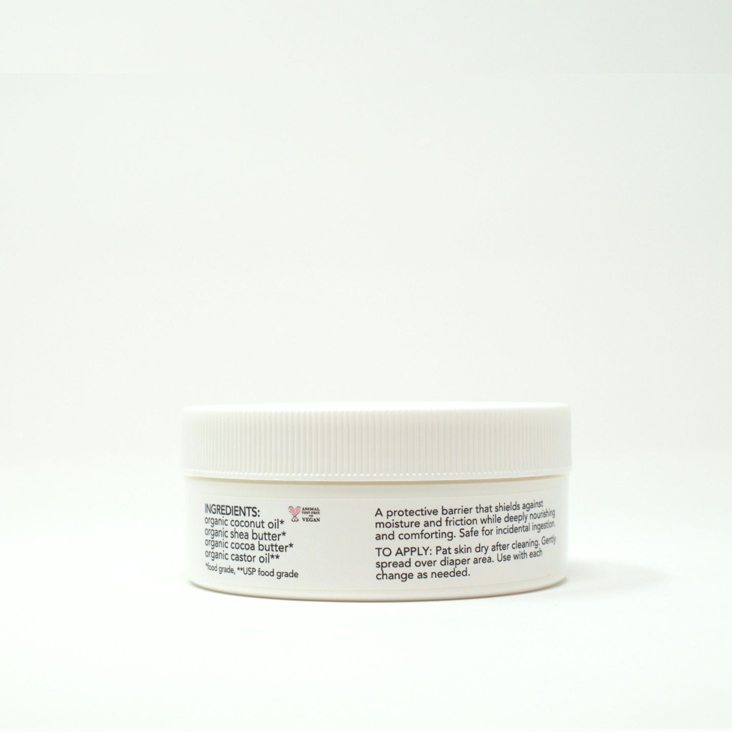 A luxuriously protective diaper cream that harnesses the natural power of coconut oil, shea butter, cocoa butter, and castor oil. This certified food-grade, organic formula delivers a rich concentration of skin-loving fatty acids, vitamins, and antioxidants that soothe, protect, and nourish your baby's most delicate skin.